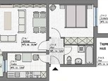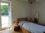 Die Wohnung hat ein Vollbad mit Wanne und Dusche mit Dachflächenfenster nach Süden, die große Küche mit 2 Dachfenstern nach Westen, Einbauküche, und Abstellraum mit Waschmaschinenanschluss, Schlafzimmer mit je einem Dachfenster nach Osten und Westen, Wohnzimmer mit offenem Flur Fensterfront nach Süden mit einer überdachten Loggia. In dem Haus befindet sich noch ein Hauswirtschaftsraum mit Wäschetrockner und Leinen. Ebenso gehört noch ein anschließbarer Fahrradschuppen zum Haus. Ein Stellplatz...